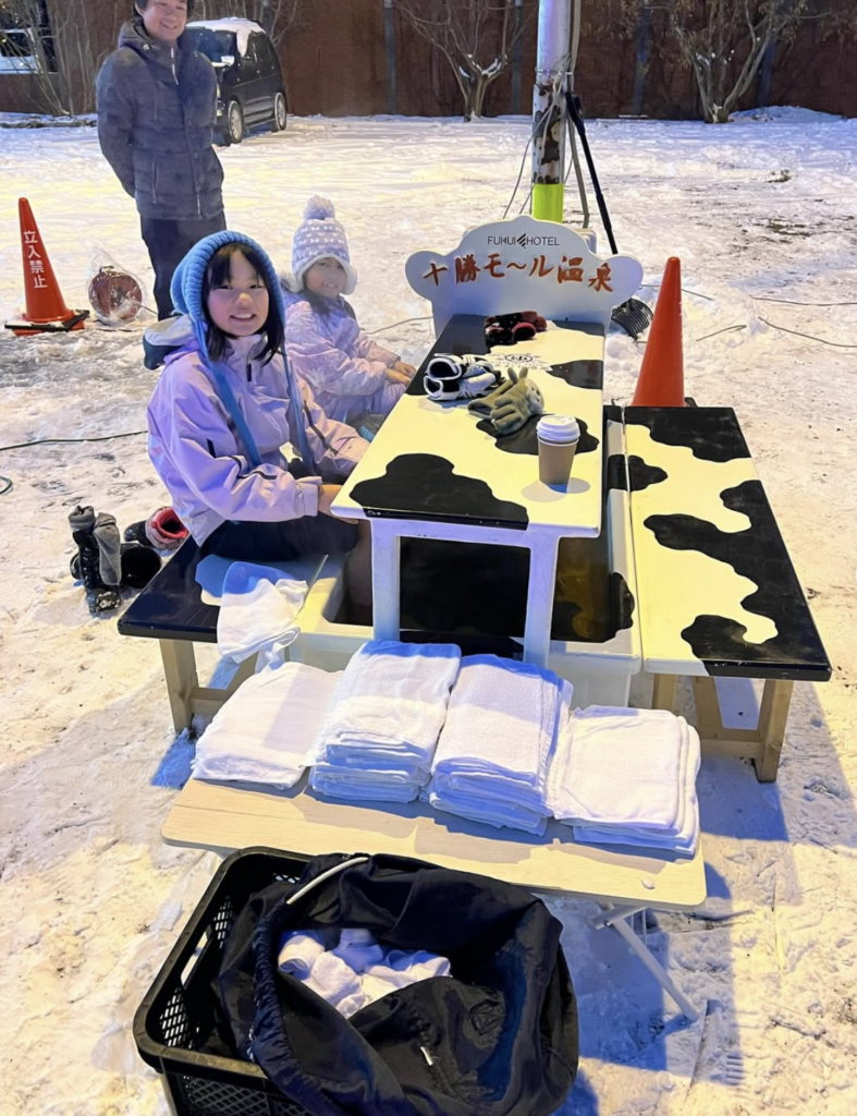 ふく井ホテル様が、会場で滑った皆様に温まっていただけるように足湯を設置してくださります。
