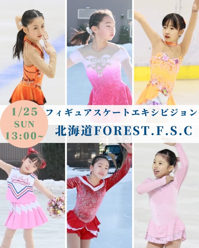 | 1月25日(日) | 13:00〜13:30 (12:30〜13:30はスケート一般滑走はできません。) | フィギュアスケート演技 | 北海道FORESTフィギュアスケーティングクラブ | シングル演技を披露してくださいます。 |